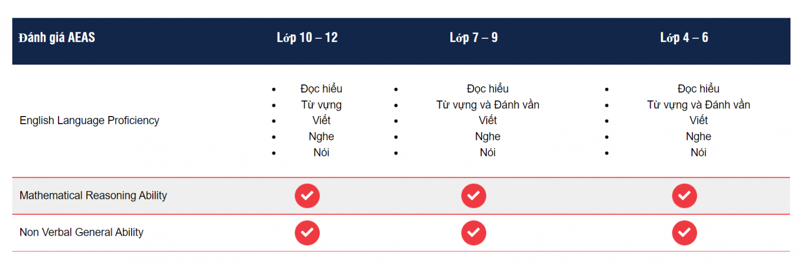 Bài test trình độ AEAS gồm những gì?